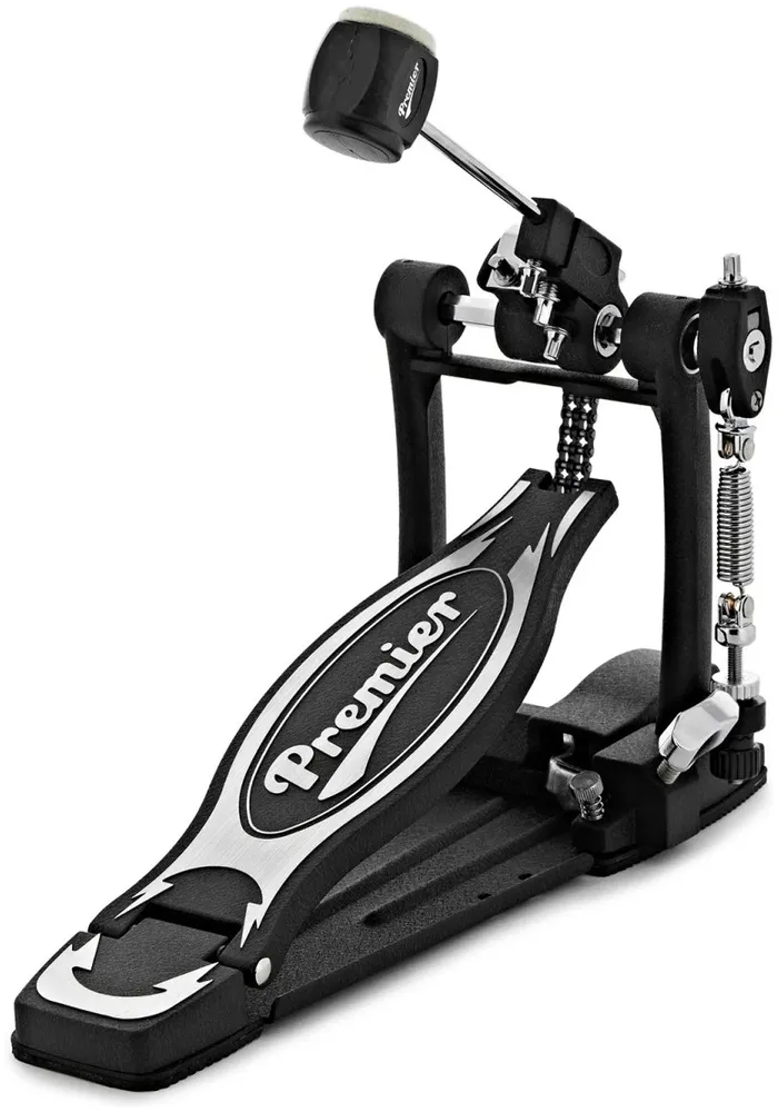 הפדל המצורף כולל מנגנון Double Chain עם Beater דו־צדדי (Felt/Plastic), מתח קפיץ מתכוונן ולוח דריכה בעיצוב Premier Footboard – לאיזון מושלם בין מהירות, תגובה וכוח.