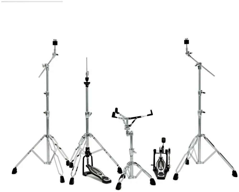 סט זה כולל סטנד היי-האט, סטנד סנר, שני סטנדים למצילות בום (Boom Stands) ופדל בייס דראם Premier Artist Single Pedal – כולם בעלי רגליים כפולות (Double Braced) המבטיחים עמידות מקסימלית ויציבות לאורך זמן.